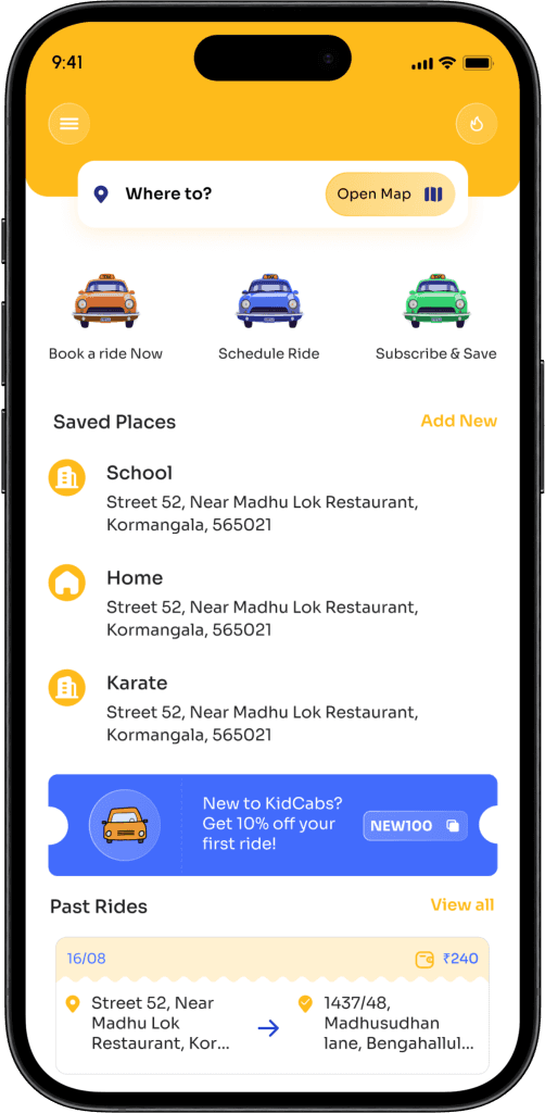 When I began my journey as a product designer, I encountered an exciting challenge: designing an intuitive and secure transportation app for a startup named KidCabs, targeting children in Tier 1 cities across India.